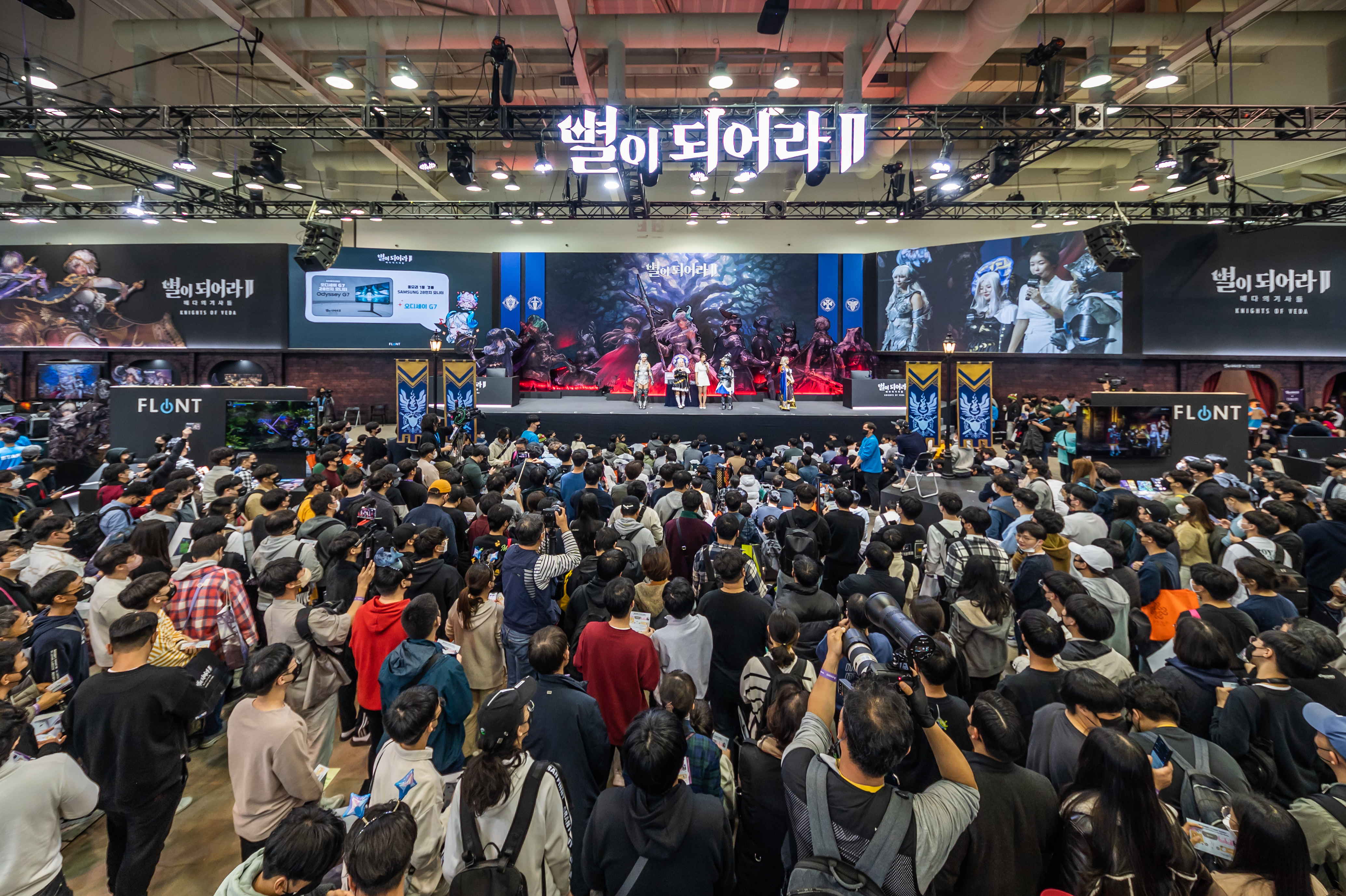 EIDETIC was responsible for designing, fabricating and activating Flint’s B2C exhibition booths within a footprint of 900m². From key visuals to the actual construction and brand application, Eidetic creatively leveraged Flint’s brand values to create an experiential booth while keeping IP and content top priority. To engage attendees, 80 demo devices were installed, showcasing Flint’s brand new game, Astra: Knights of Veda. Attendees also had the opportunity to experience demos on two types of devices which highlighted their latest features and an interactive photo opportunity. Attendees could enjoy instagrammable moments throughout the event with the photo booth, cosplay zone, and giant game characters displays. Additionally, they received high-quality merchandising as giveaways and the best gameplay from the live game tournament on stage. Throughout G-STAR, the stage was abuzz with engaging events and rich content that captivated attendees, including cosplay photo sessions, an OX Quiz, and more with streamers.
